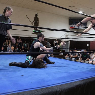"THE AMERICAN SPARTAN" ZACK APOLLYON W/ "MR. FIVE STAR" CHARLIE CRAIG PINNED ROSS BRAY